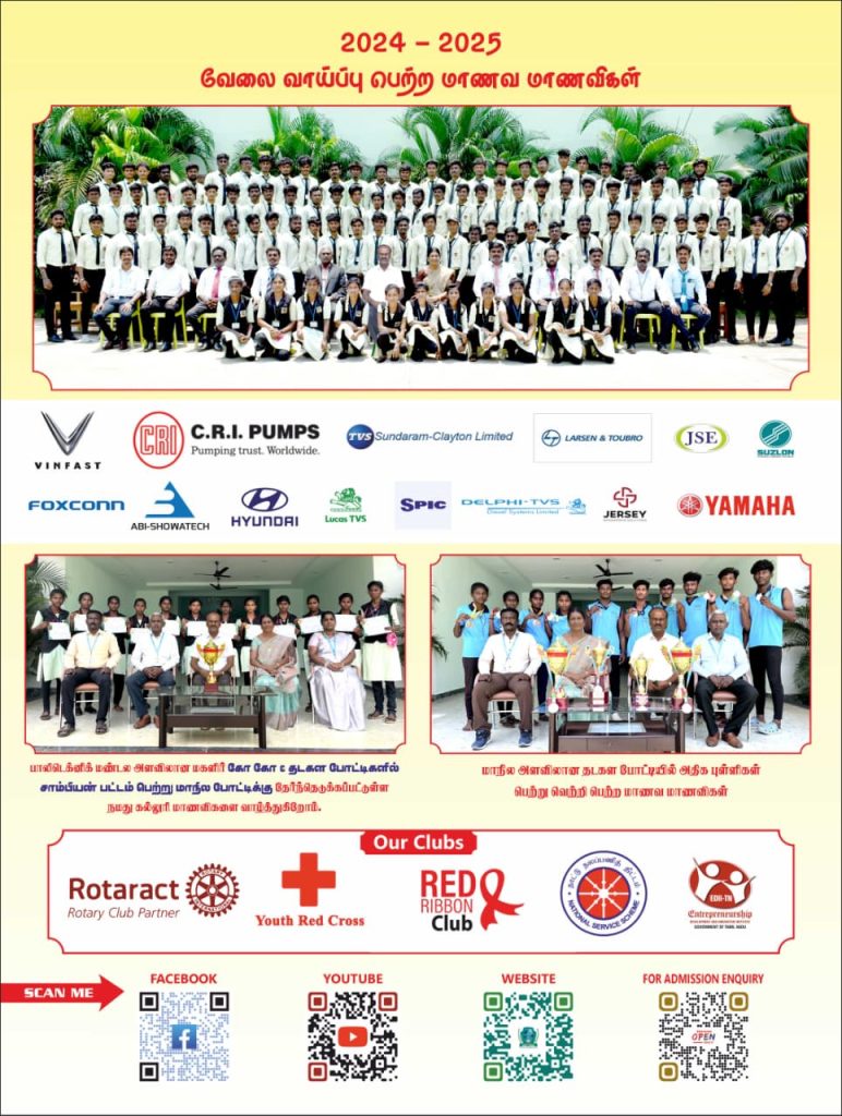 Students are selected for jobs in on-campus/ off-campus interviews by reputed industries. The old Students of the Polytechnic meet regularly. The Polytechnic strives to offer best quality technical education to students and producing skilled technical manpower meeting international standards and global requirements.