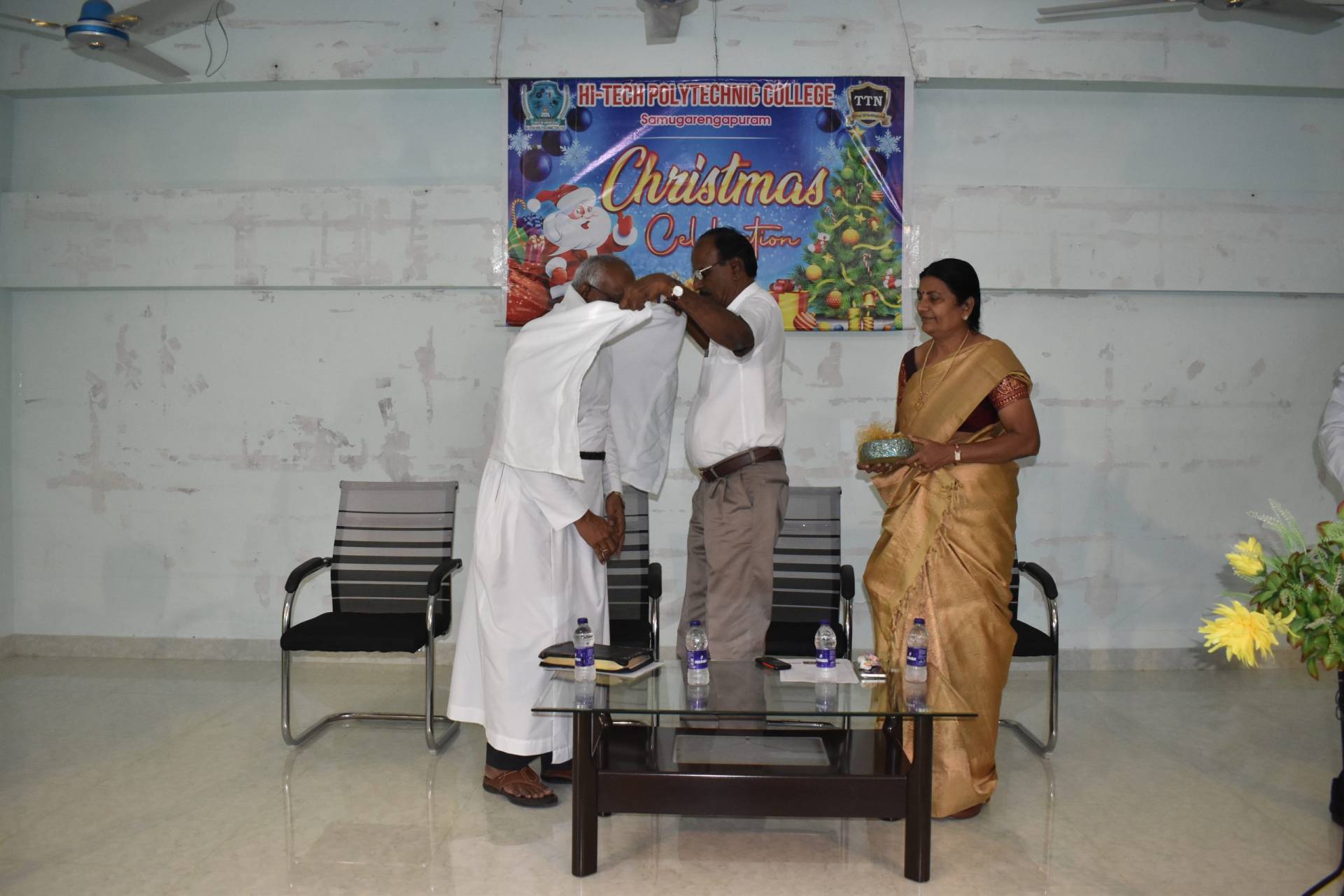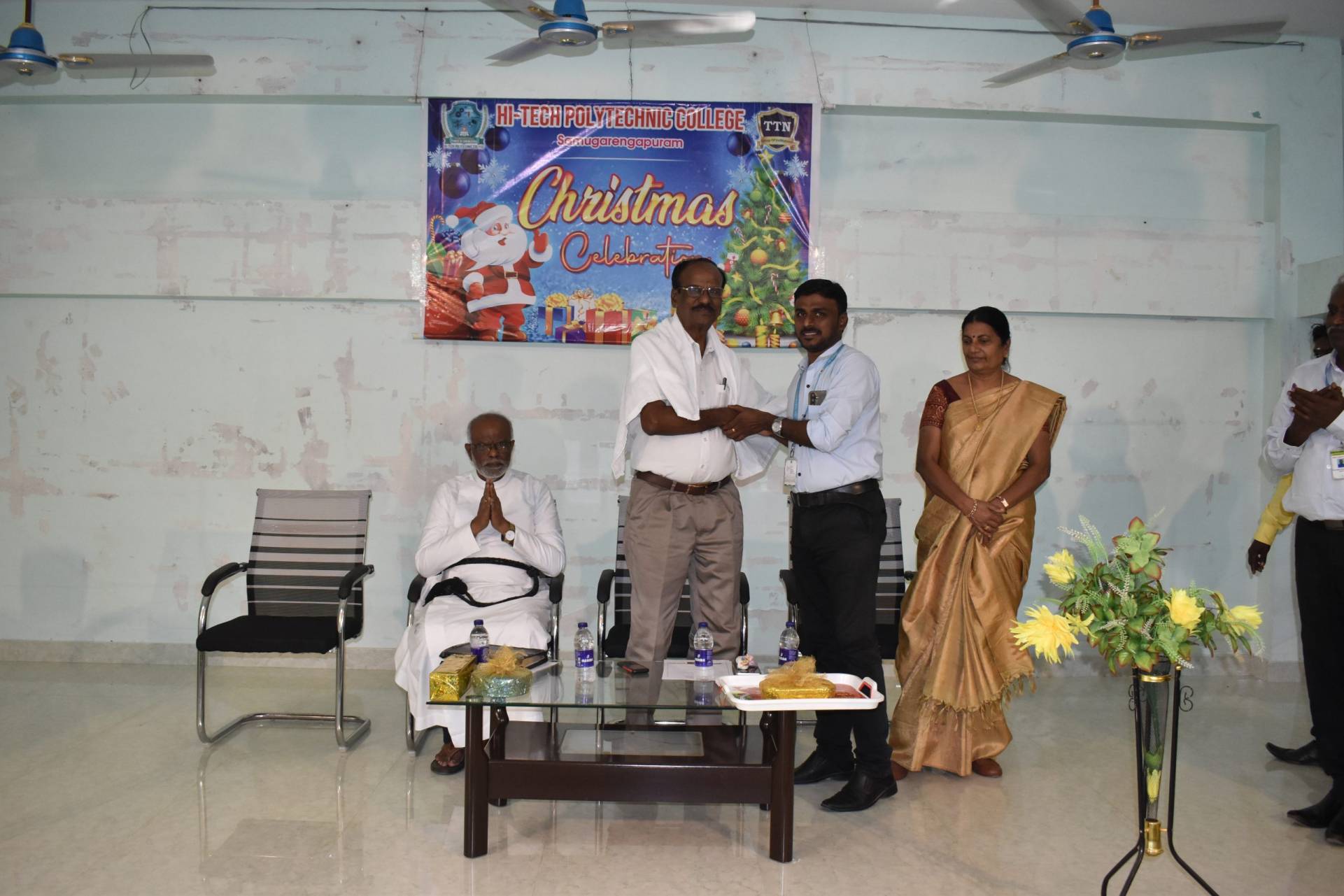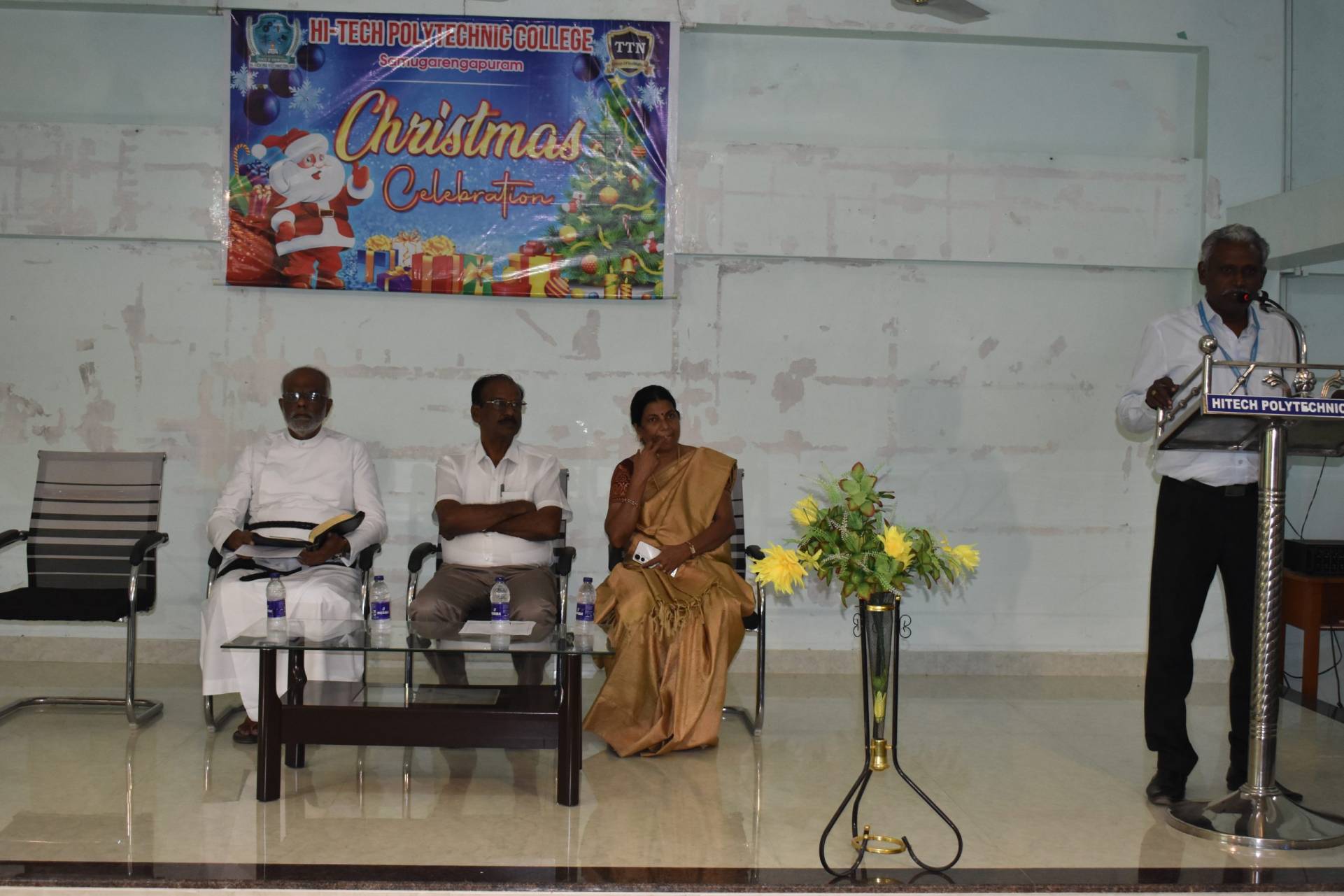 Christmas was celebrated in a grand manner on 23.12.2025 at the Hi-Tech Polytechnic College of the T.T.N Educational Group, located at Samugarengapuram in Tirunelveli District. On this occasion, Rev. Devanbu from Valliyur CSI Church offered prayers and delivered the Christmas message.