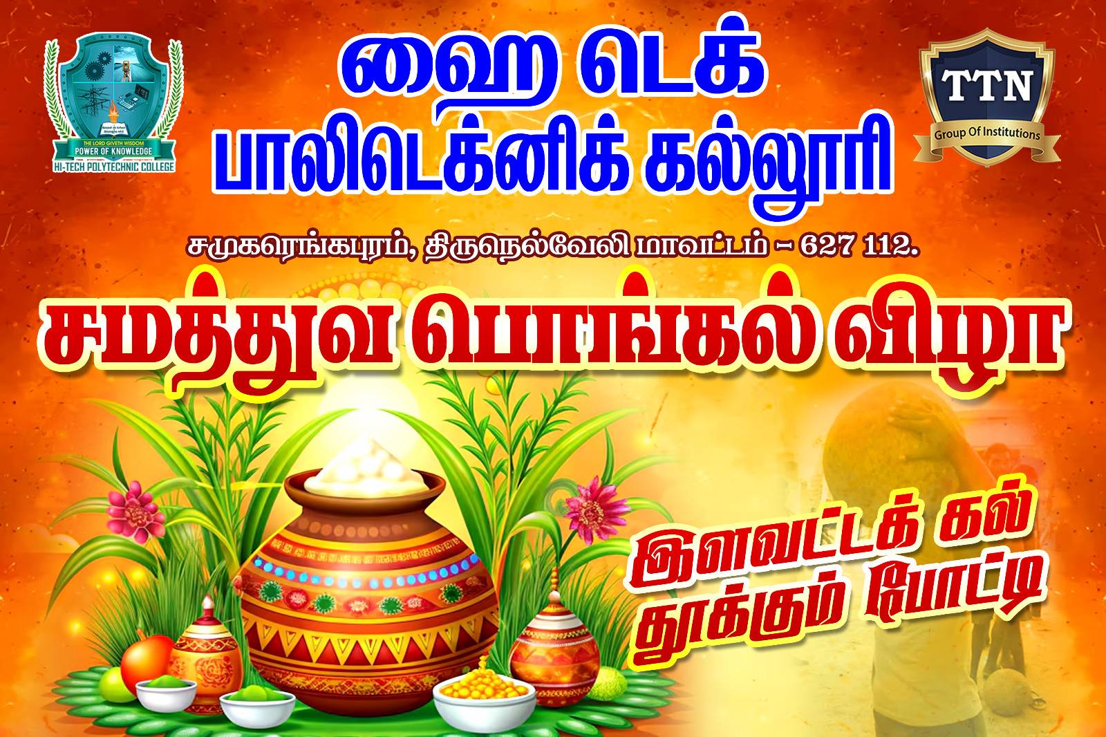 At Hi-Tech Polytechnic College, located in Samoogarengapuram of Tirunelveli District, the Equality Pongal Festival was celebrated on 13.01.2026 in connection with the Tamil festival, with the aim of promoting equality among students.