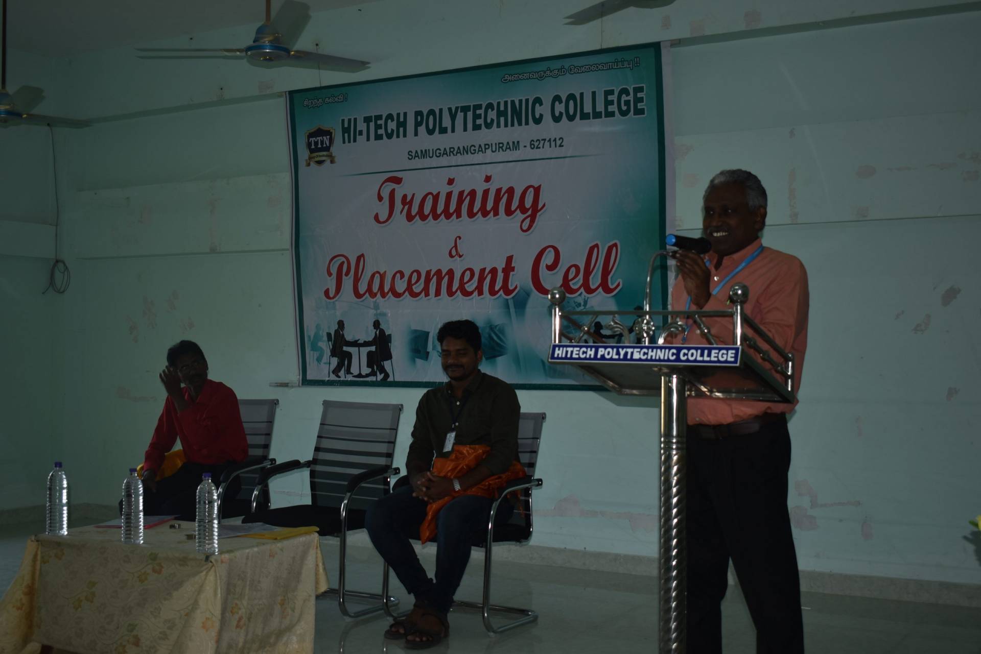 A campus placement interview for final-year Mechanical Engineering students was conducted on Monday, 06.01.2025, at Hi-Tech Polytechnic College. Representatives from Jersey Engineering Private Limited, Nanguneri, participated in the interview process.