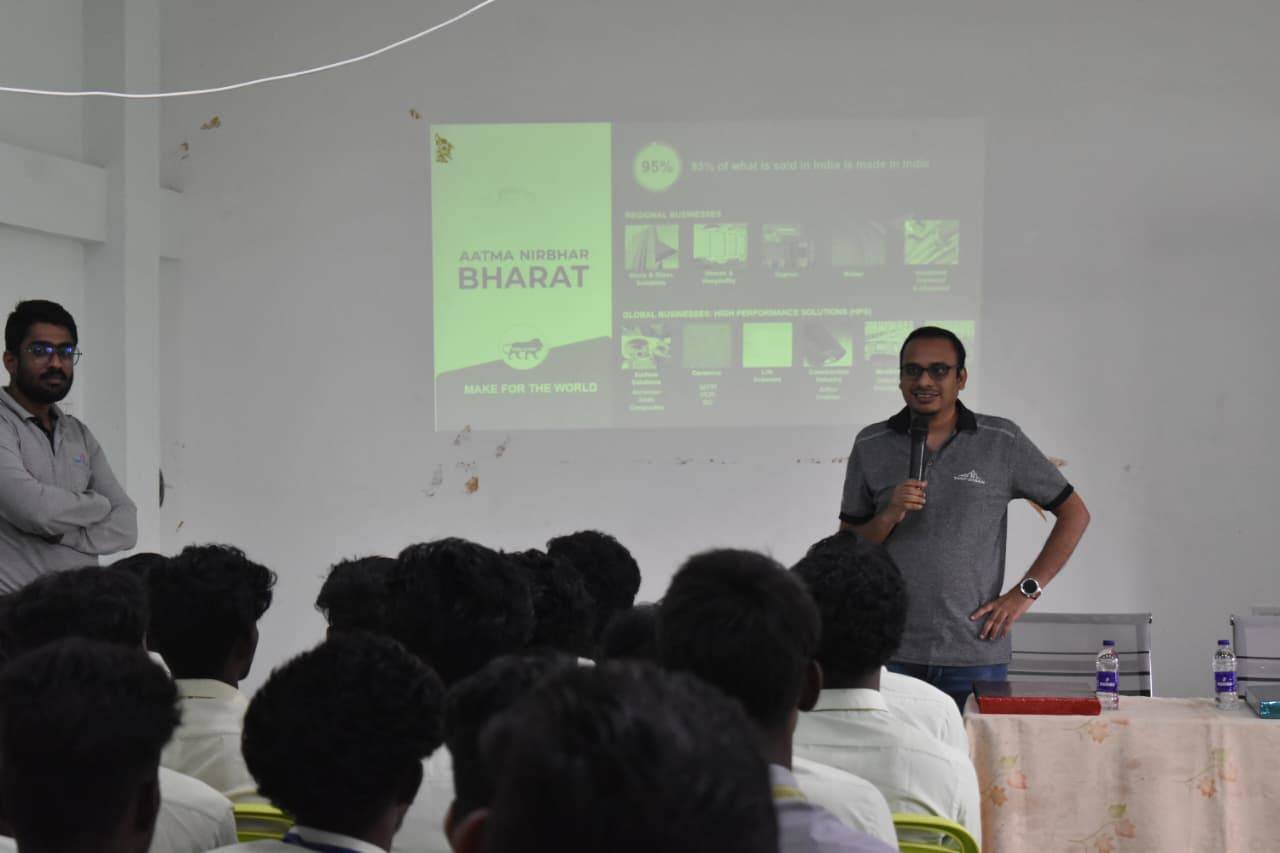 The Human Resource Development Officers of the company, Mr. N. Valavanarasu and Mr. J. Rishikesh, attended the event and conducted the selection process. Prior to the selection, the HR officials addressed the students and explained the company’s operations, career opportunities, and the benefits offered by the organization to selected candidates.